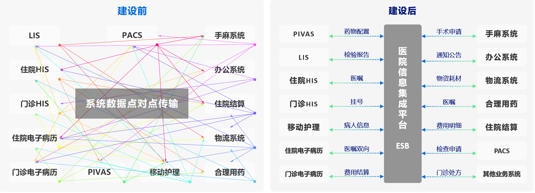 建设前后对比通过建设数据总线ESB集成引擎,从“紧耦合”模式变为“松耦合模式”,实现业务系统集成 凤凰彩票大厅,打破机构内“信息孤岛”和“信息烟囱”。 |